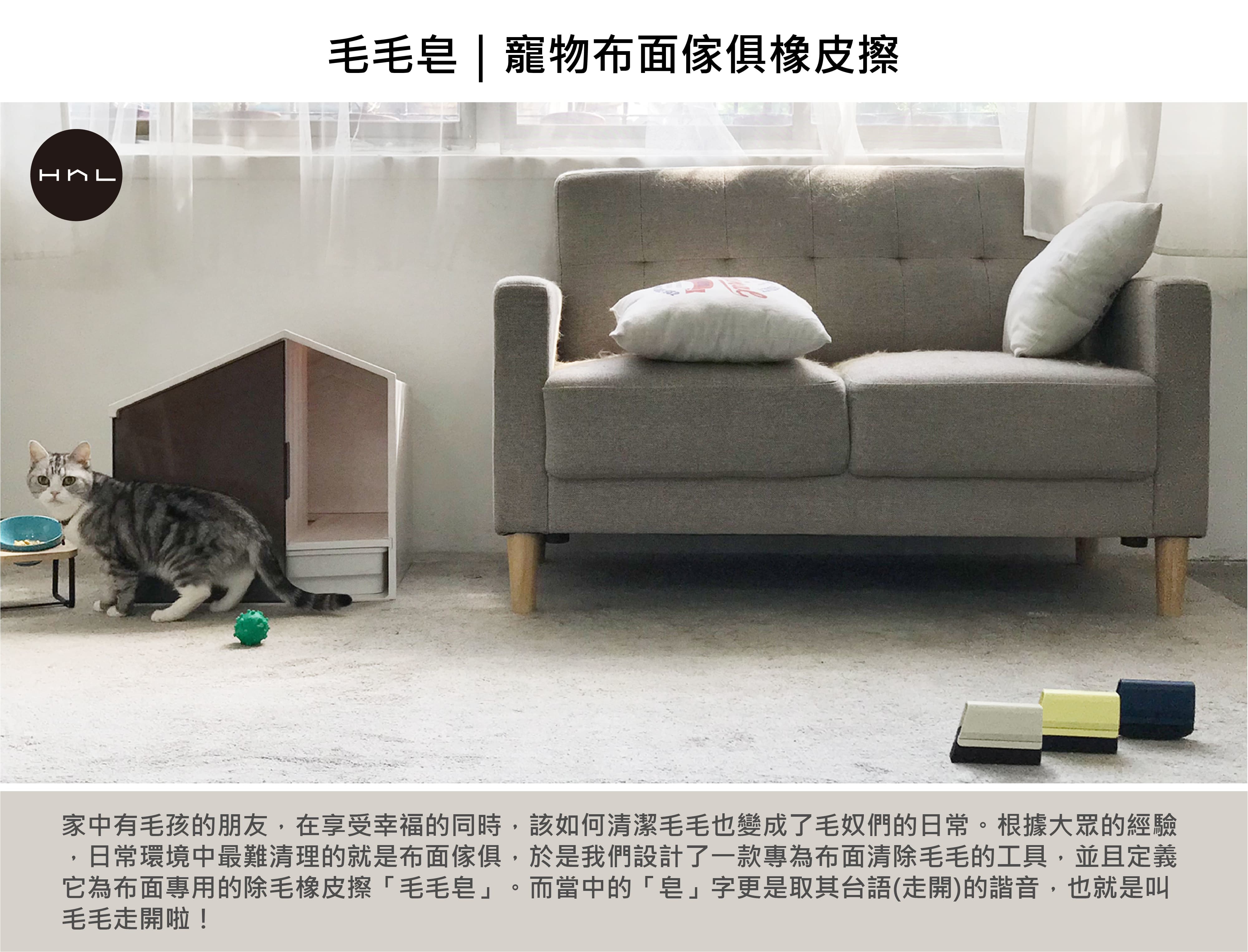 "Mao-mao-zao"is a tool specifically designed for cloth/fabric furniture to remove animal fur under the concept of “Subtraction design ”We all have same experience of cleaning tracks for our little beloved furry pets and find it irritating during the cleaning process.In fact, “suction” or “adhesion” methods are used for almost 90% of fur-removal products on market (for example, sticky roller/static cleaning brush/vacuum cleaner) .These kinds of “Addition design” cleaning methods are not only wasteful but not eco-friendly. Even we have to clean the cleaner itself afterwards. It’s wasting time and inconvenient!