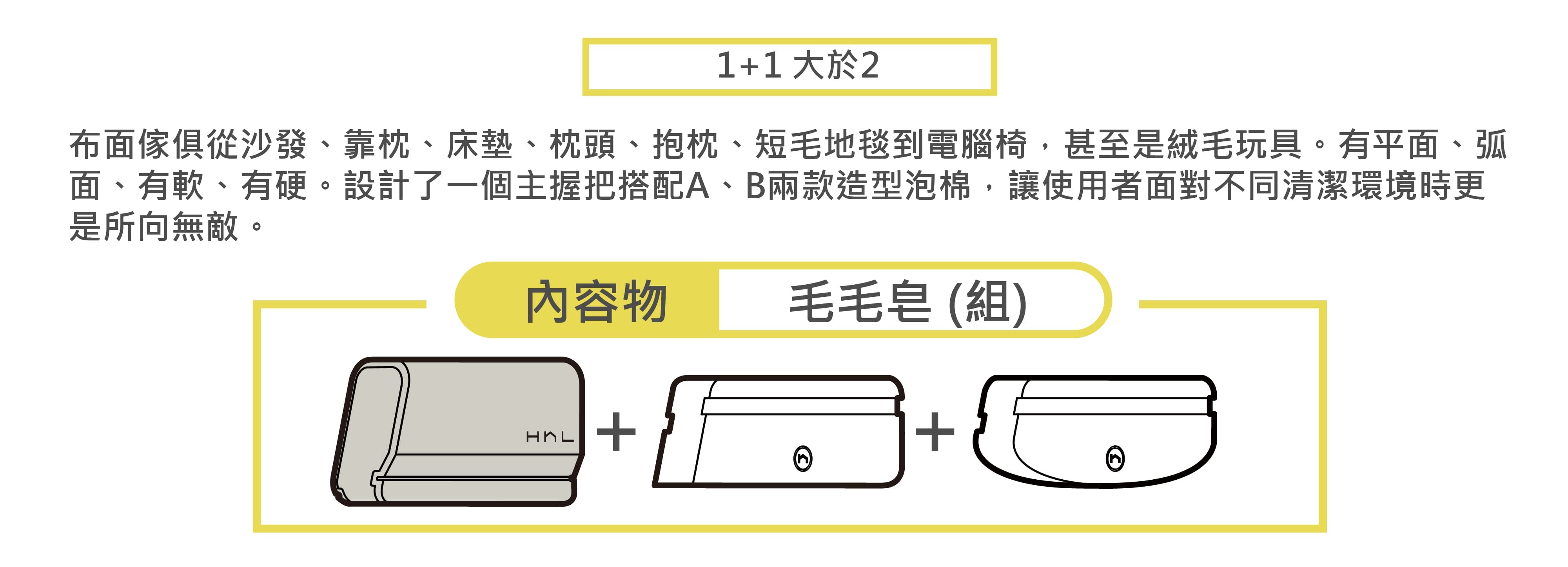 "Mao-mao-zao"is a tool specifically designed for cloth/fabric furniture to remove animal fur under the concept of “Subtraction design. ”This technique makes bottom sponge generate resistance with surface to removes ground-in dirt from the fabric.
