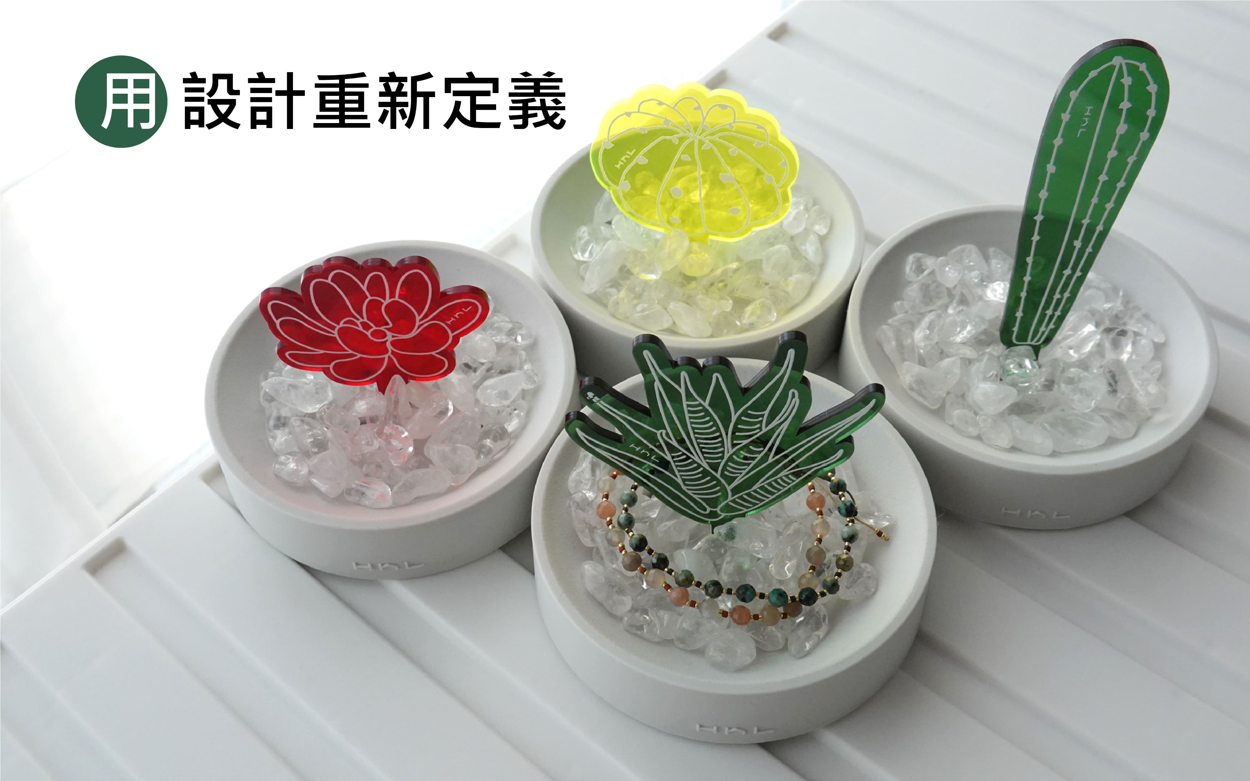 水晶 (天然石) 的能量數千年來一直被證實並廣泛的運用著,不論是佩戴的飾品或蒐藏的擺飾,磁場皆因萬物而相互影響,唯有透過淨化可使它回到原始設定。熱愛水晶的H h L致力將水晶產品化,用設計重新定義消磁盆。將盆作為宅,宅中有植物,喻意為「盆宅」。